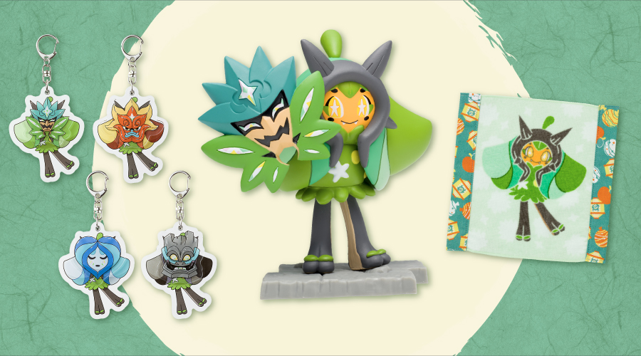 La collection de goodies Pokémon Ogerpon comprend une figurine avec un support mémo magnétique, des essuie-mains et quatre types de porte-clés en acrylique.