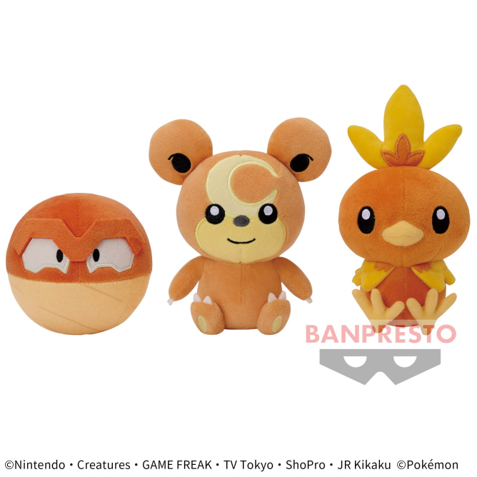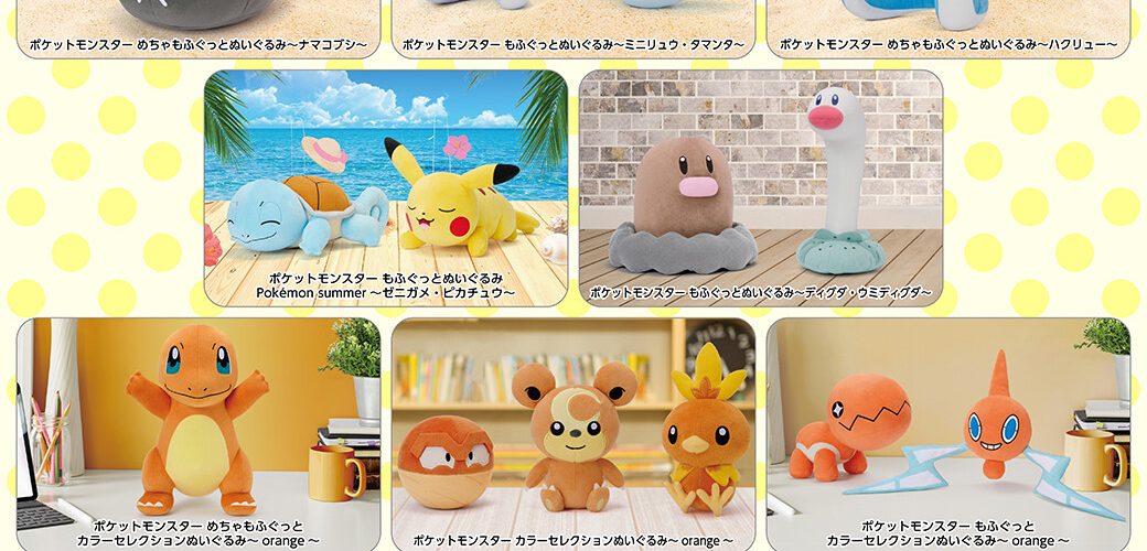 Chaque mois, Banpresto produit des peluches, coussins et parfois des figurines Pokémon. Elles sont disponibles dans les machines à pinces et en vente dans certaines boutiques.