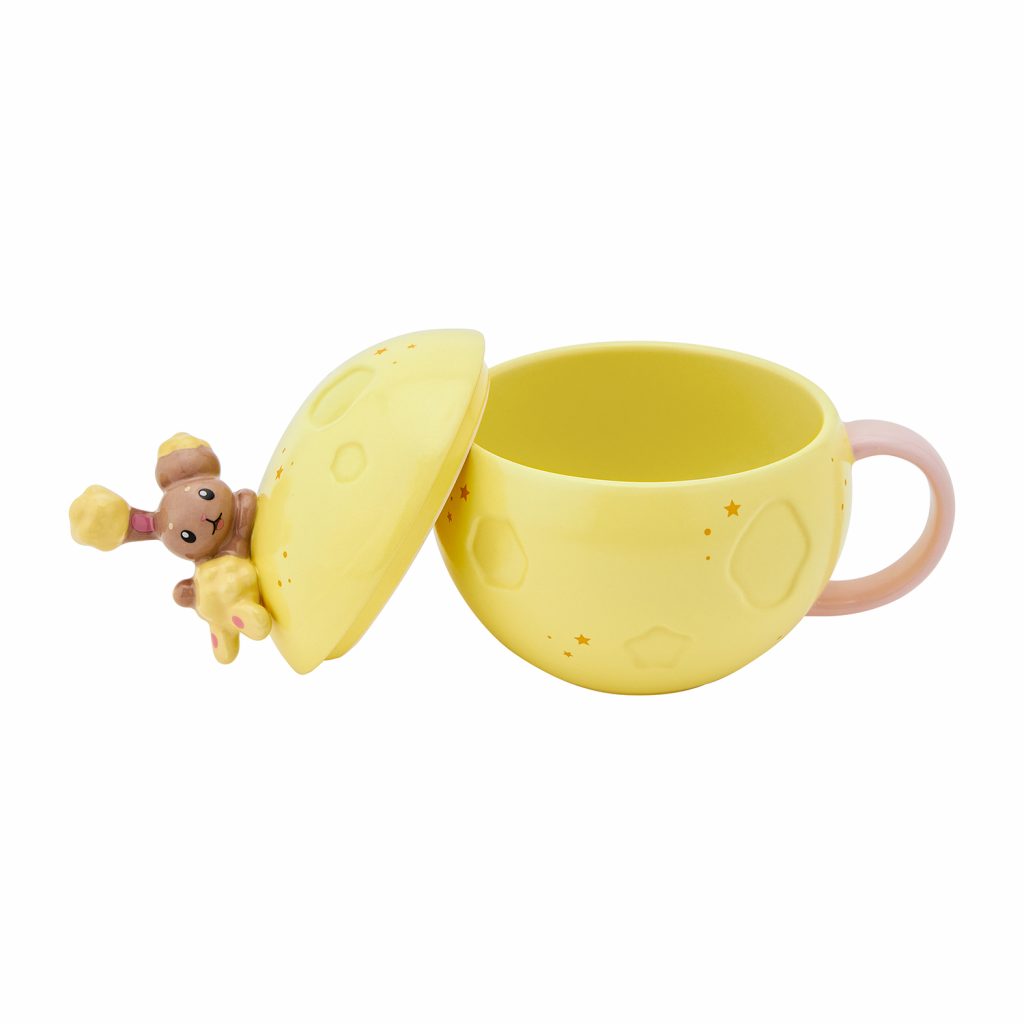 Le coussin est inspiré de Mélo dansant sous la pleine lune avec la lune pouvant briller faiblement dans le noir. De plus, le mug au motif pleine lune a un joli design avec Laporeille perché sur le couvercle. Noctali et Flambino apparaissent sous forme de silhouettes au dos du mug.
