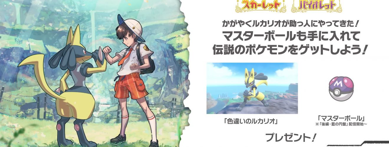 Une nouvelle distribution a été annoncée sur Pokémon Écarlate et Violet pour recevoir un Lucario chromatique et une Master Ball ! Ce Pokémon est distribué à l’occasion de la sortie du Trésor Enfoui de la Zone Zéro Volume 2 : Le Disque Indigo.