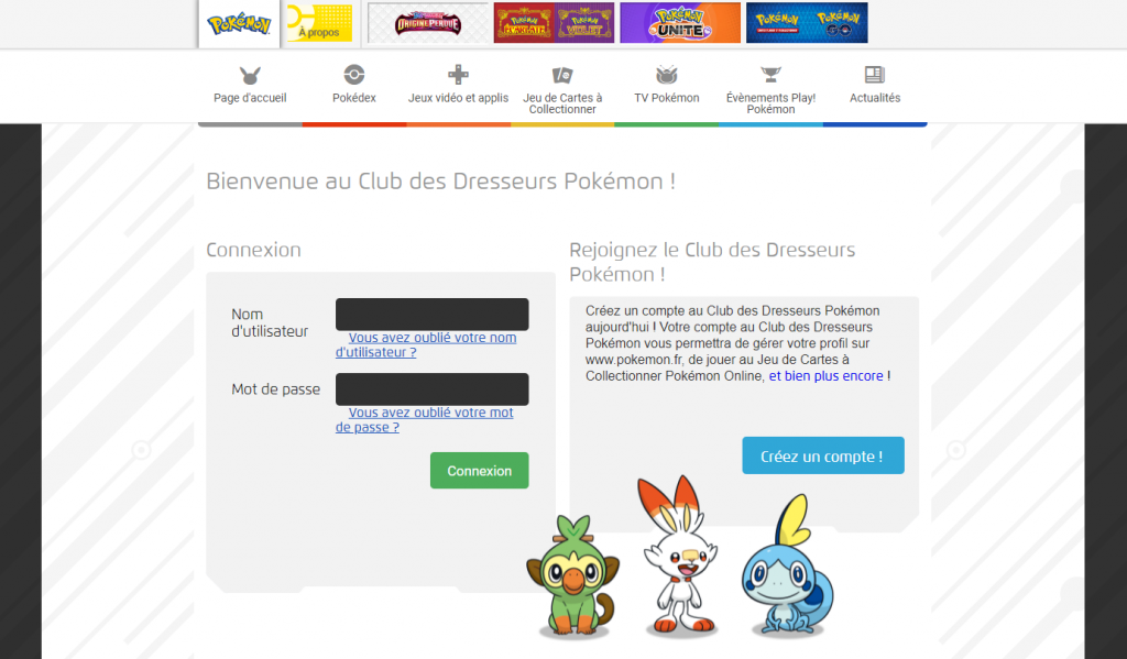 • Et enfin, si vous n’avez pas encore de compte Dresseur, il suffit de le créer en allant sur le site www.pokemon.fr.