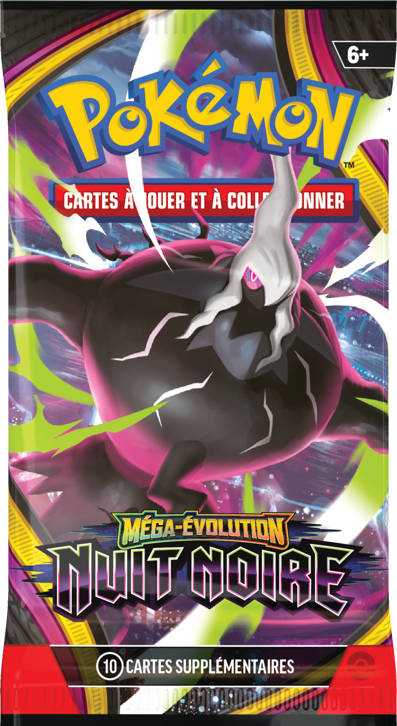 « Les joueurs et joueuses du JCC Pokémon auront l’occasion de jouer avec Méga-Évolution Nuit Noire avant sa sortie en participant à l’un des nombreux tournois d’Avant-première organisés dans le cadre du programme de Play! Pokémon, dans les magasins indépendants participants »