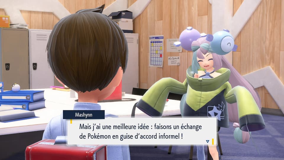 Deuxièmement, après avoir discuté avec des intervenants spéciaux plusieurs fois, ces derniers vous proposeront d’échanger des Pokémon. Les Pokémon proposés porteront un ruban, qui apparaît pour la première fois dans le contenu additionnel : le Ruban Partenaire.