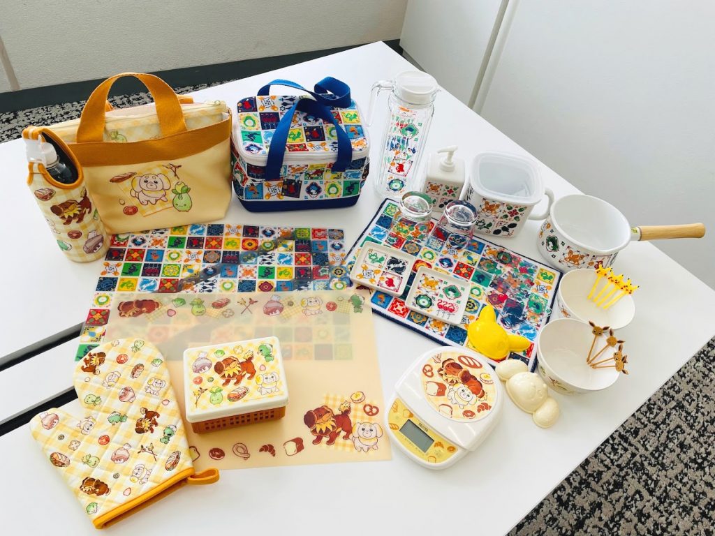 Les marchandises sont conçues dans le style des tuiles avec des Pokémon de la région de Paldea. Il y a des tapis égouttoirs et des mitaines de cuisine qui peuvent être utilisés dans la cuisine de tous les jours, des piques-repas avec de jolis motifs qui peuvent être utilisés pour faire des boîtes à lunch, et des moules qui facilitent la réalisation de sandwichs en forme de Pikachu et de Pâtachiot. Il existe aussi des articles de papeterie.