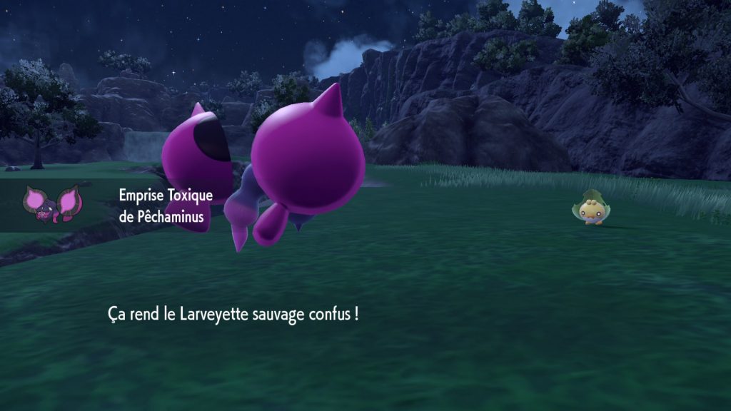 Pêchaminus possède un tout nouveau talent, Emprise Toxique, qui apparaît pour la première fois dans Le trésor enfoui de la Zone Zéro. Grâce à ce talent, les Pokémon empoisonnés ou gravement empoisonnés par Pêchaminus deviennent également confus.