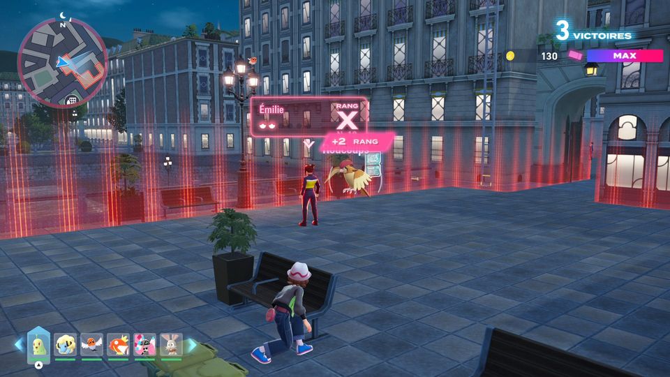 Et enfin, afin de maximiser vos chances, vous devrez faire preuve d’une organisation hors pair pour progresser le mieux possible. La nuit, rendez-vous dans la zone de combat pour affronter des participants de la compétition. Quant à la journée, allez attraper des Pokémon dans les zones sauvages et entraînez-les pour vous préparer à votre prochaine session d’affrontements de nuit.