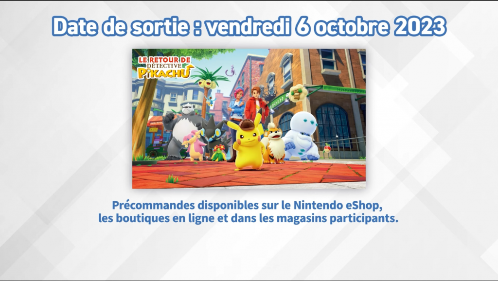 Ensuite, Le retour de Détective Pikachu est, dès aujourd’hui, disponible en précommande. Vous pouvez donc d’ores et déjà, précommander le jeu sur le Nintendo eShop, dans les boutiques en ligne ou bien dans les magasins physiques participants.