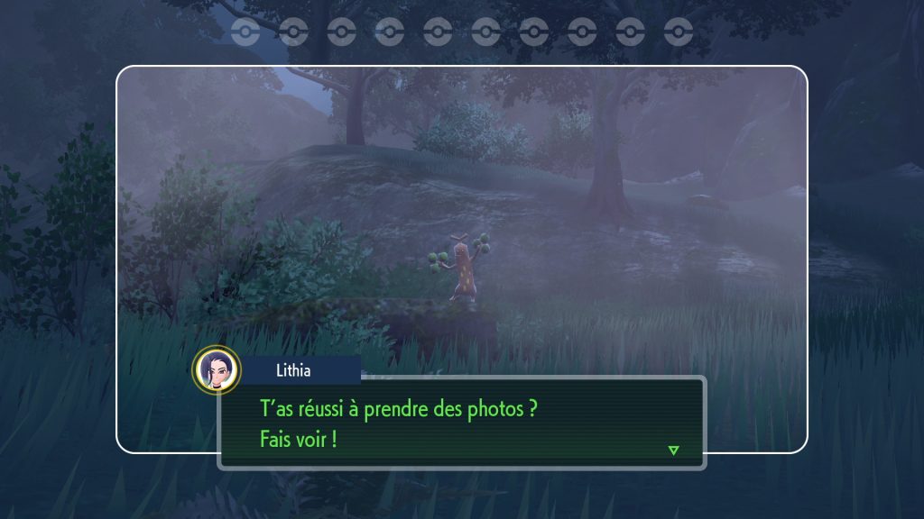 Lithia est une photographe itinérante fort sympathique. Elle semble être à la recherche d’un certain Pokémon qu’elle souhaite prendre en photo.
