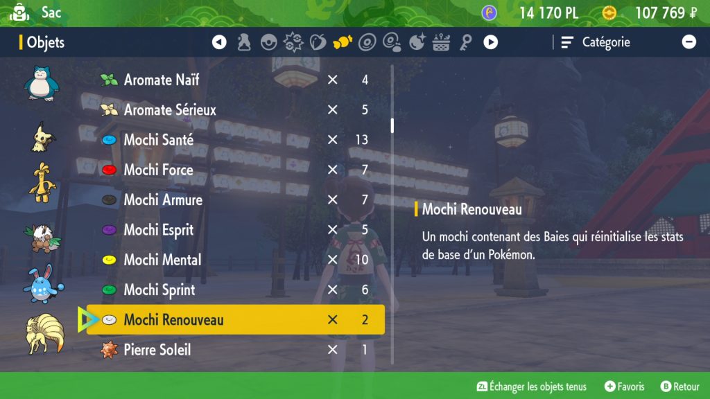 Le but est assez simple, vous devez éclater des Ballons Monstre à dos de Pokémon pour récupérer des Baies. Ensuite, vous devez les amener aux tables correspondantes. Ainsi, vous recevez des mochis en récompense que vous pouvez utiliser pour augmenter les stats de base de vos Pokémon.