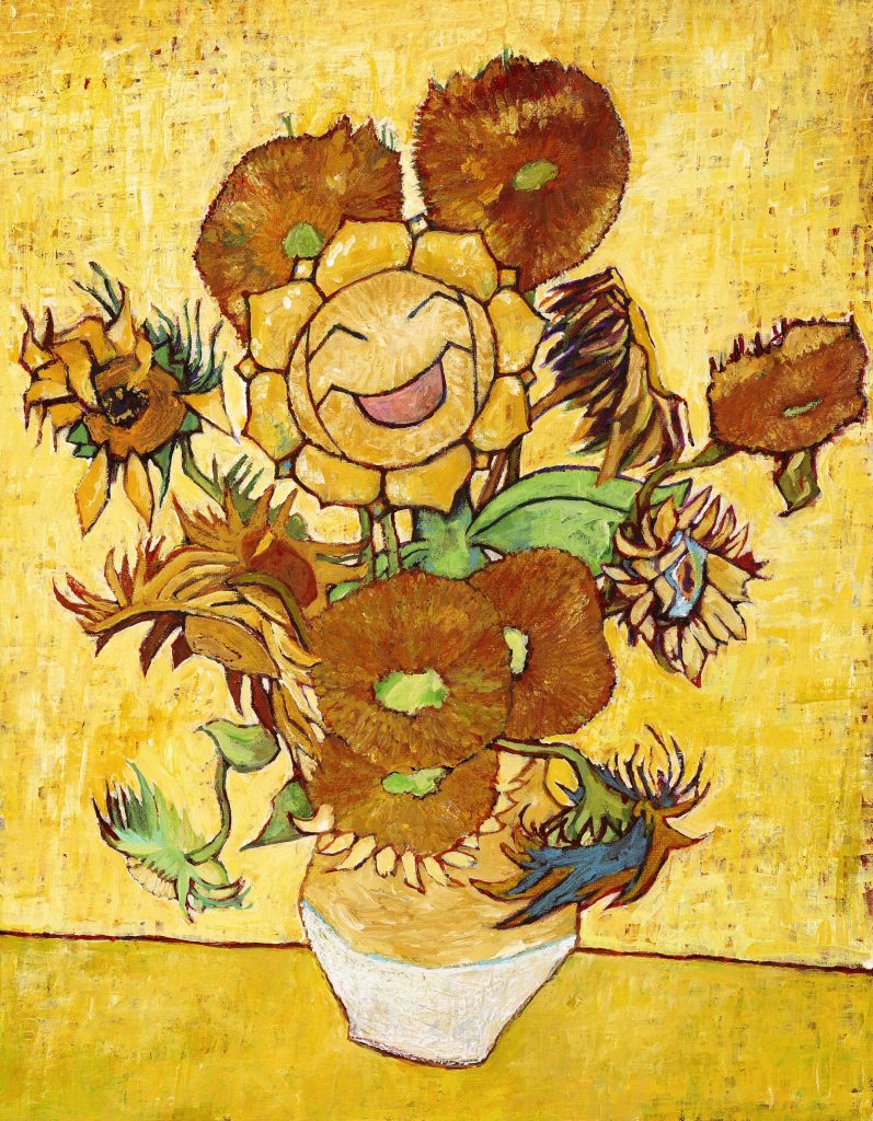 • Héliatronc caché dans une variante du célèbre tableau Les Tournesols (1889)