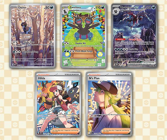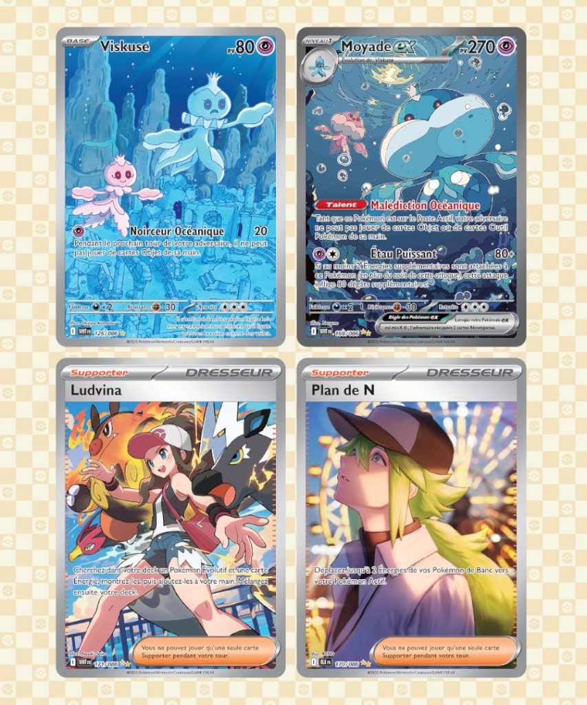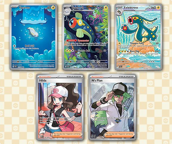 Démarrez vos collections des extensions Écarlate et Violet – Foudre Noire et Écarlate et Violet – Flamme Blanche du Jeu de Cartes à Collectionner Pokémon avec trois cartes « illustration rare » mettant en vedette la chaîne évolutive complète Anchwatt, Lampéroie et Ohmassacre, ainsi que deux cartes Dresseur « ultra rare », Ludvina et Plan de N.