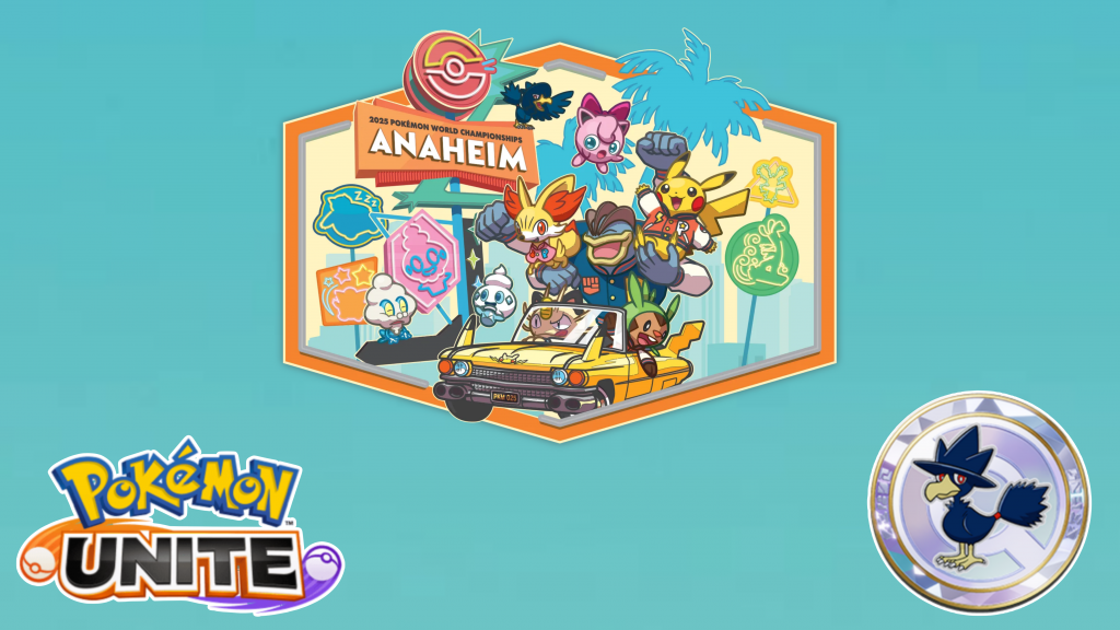 Pokémon UNITE : Médaille de renfort en platine Cornèbre et autocollant des Mondiaux 2025 en jeu