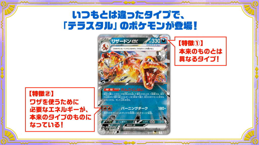 SV3 Ruler of the Black Flame présentera les premiers Pokémon ex Téracristal avec un type inhabituel. Vous trouverez Dracaufeu ex de type Ténèbres, Tyranocif ex de type Électrik et Bekaglaçon de type Feu.