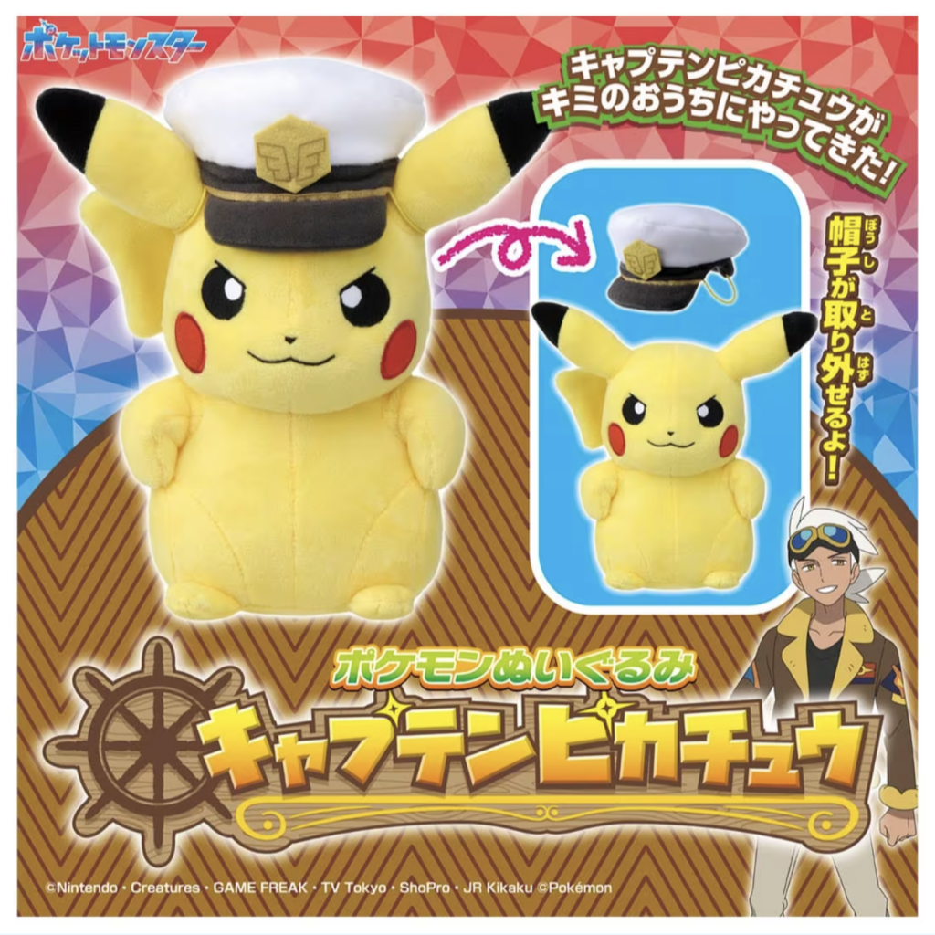 Et enfin, toujours en lien avec l’animé, voici la peluche de Capitaine Pikachu. Elle mesure environ 22 cm de haut.