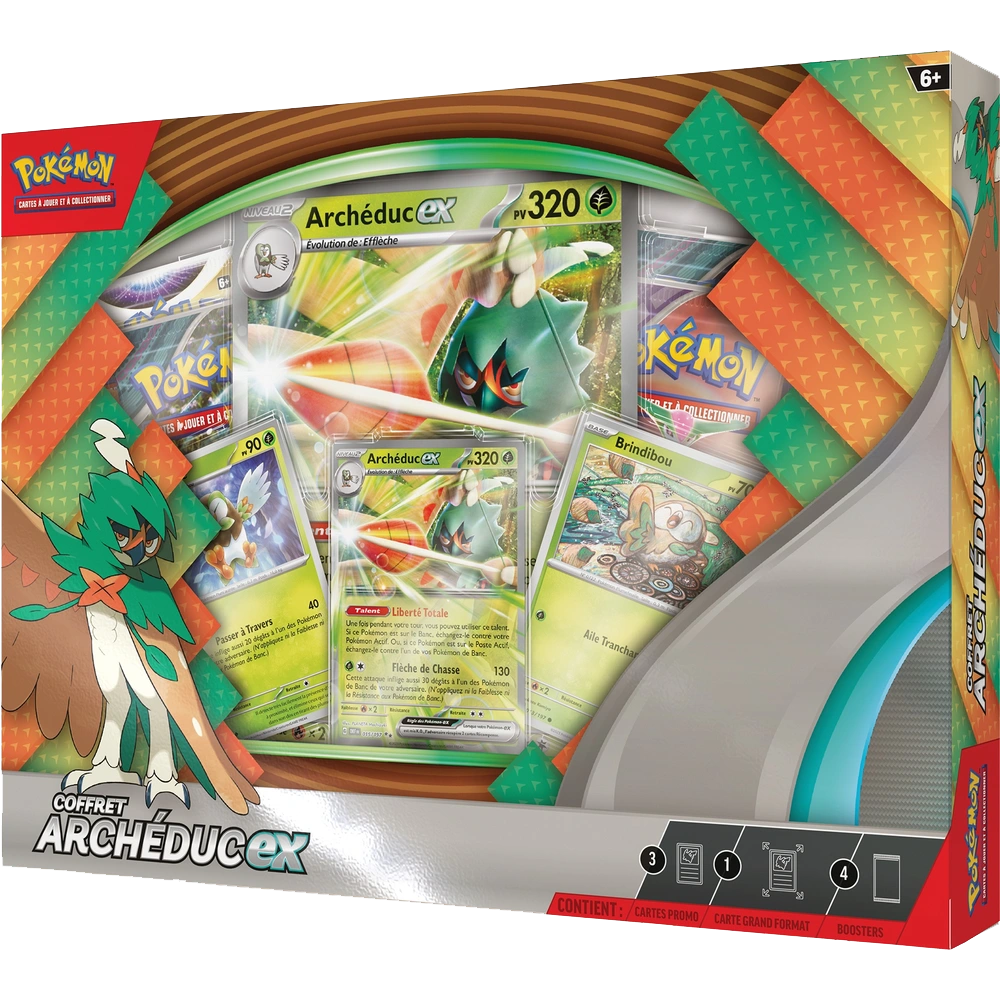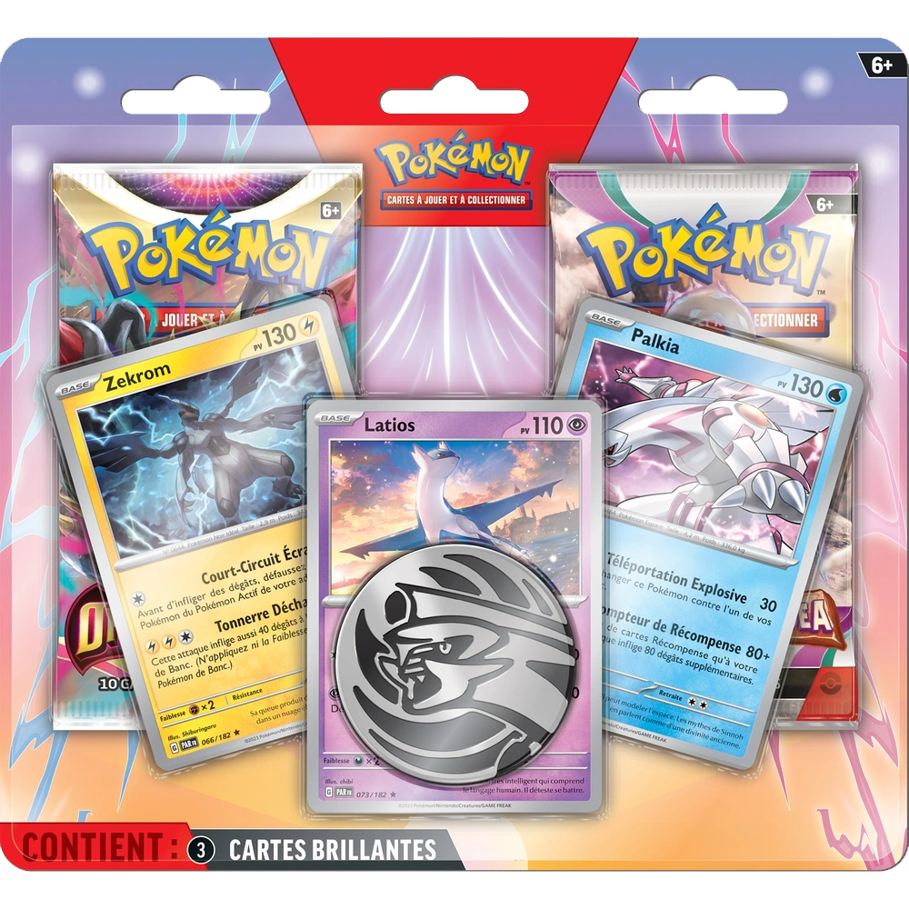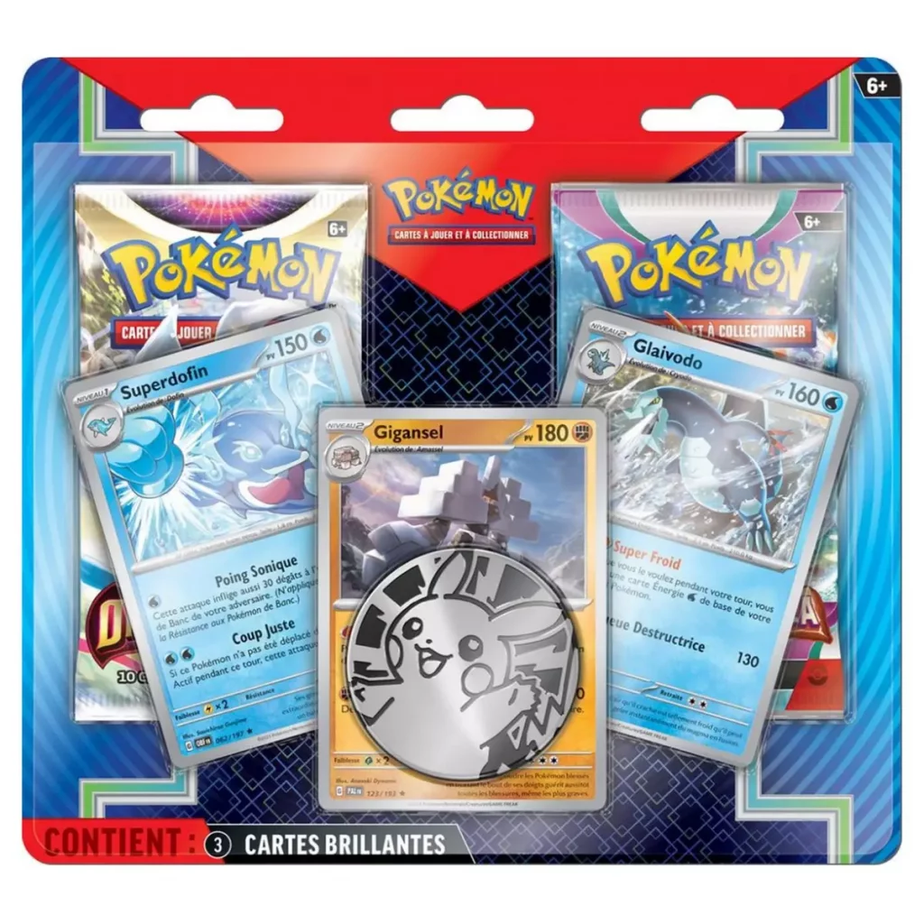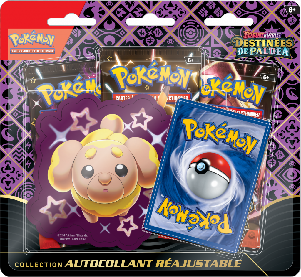 Contenu : 3 boosters Pokémon TCG, 2 planches d’autocollants