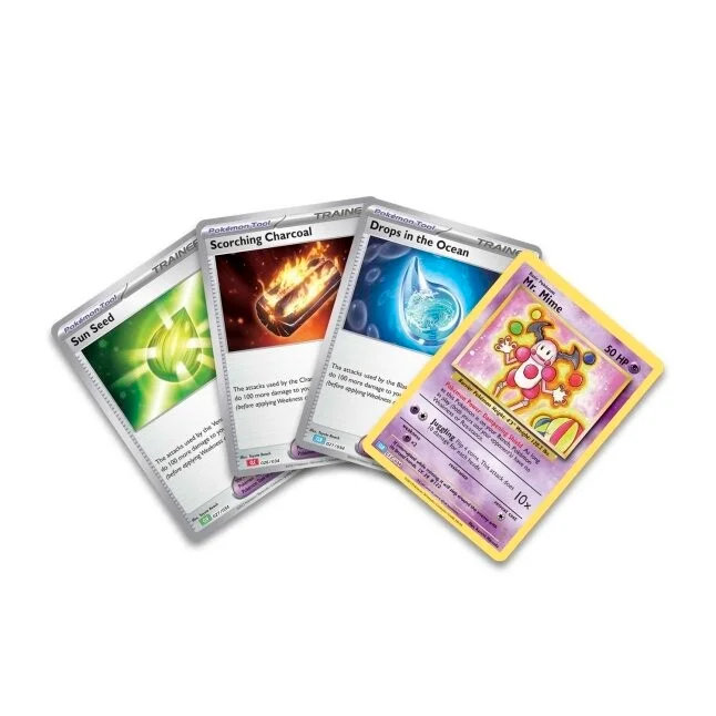 Contenu : 3 cartes brillantes Lugia ex Ho-Oh ex et Suicune ex, 1 carte brillante de M. Mime, 3 cartes Outil brillante, 1 carte jumbo de Lugia ex, 11 boosters du JCC Pokémo