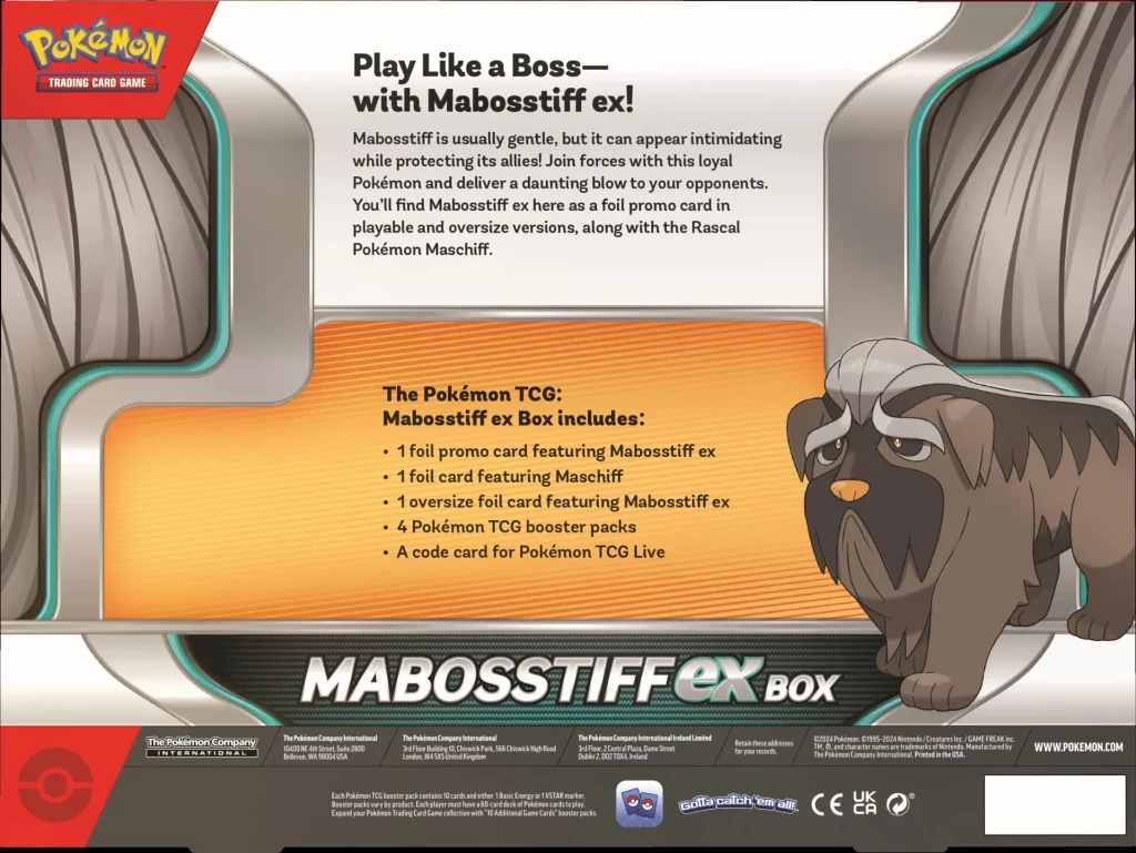Contenu : 1 carte promotionnelle de Dogrino ex, 1 carte brillante de Dogrino, carte jumbo de Dogrino ex, 4 boosters du JCC Pokémon, 1 carte à code pour Pokémon JCC Live